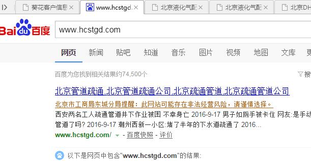 那一排黃色的字,“北京市工商局東城分局提醒”,這情況,以前真沒有遇見過。現(xiàn)在工商局也介入搜索結(jié)果了。