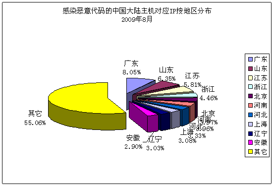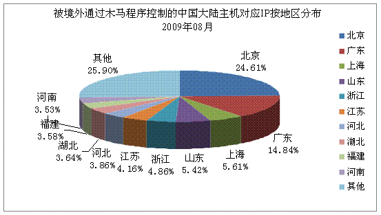 一、河南互聯(lián)網(wǎng)應(yīng)急中心事件處理情況 八月份,我中心共處理2起互聯(lián)網(wǎng)安全事件。國(guó)家互聯(lián)網(wǎng)應(yīng)急中心發(fā)現(xiàn)我省某地市政府網(wǎng)站掛馬。我中心及時(shí)將事件信息通報(bào)相關(guān)電信運(yùn)營(yíng)企業(yè),要求相關(guān)電信企業(yè)及時(shí)協(xié)調(diào)處理,網(wǎng)站現(xiàn)已恢復(fù)正常。 二、基礎(chǔ)電信運(yùn)營(yíng)企業(yè)及網(wǎng)絡(luò)安全企業(yè)上報(bào)情況 八月份,我省各基礎(chǔ)電信運(yùn)營(yíng)企業(yè)及網(wǎng)絡(luò)安全企業(yè)共上報(bào)網(wǎng)絡(luò)安全事件84起,其中河南電信公司上報(bào)11起,河南移動(dòng)公司上報(bào)3起,河南天融信上報(bào)63起,河南山谷上報(bào)1起,世紀(jì)信安上報(bào)6起。相關(guān)電信運(yùn)營(yíng)企業(yè)已及時(shí)處理所上報(bào)安全事件。 三、河南省網(wǎng)絡(luò)安全事件分析 。ㄒ唬┠抉R事件數(shù)據(jù) 2009年8月1日至31日,CNCERT/CC對(duì)當(dāng)前流行的木馬程序的活動(dòng)狀況進(jìn)行了抽樣監(jiān)測(cè),發(fā)現(xiàn)我國(guó)大陸地區(qū)23398個(gè)IP 地址對(duì)應(yīng)的主機(jī)被其他國(guó)家或地區(qū)通過木馬程序秘密控制,其分布情況如下圖所示,最多的地區(qū)為北京市(24.61%)。其中,我省受控IP地址為826個(gè),排名第10。 ![]() 另外,根據(jù)國(guó)內(nèi)木馬控制服務(wù)器IP地址分布情況看,廣東最多,達(dá)7489個(gè),河南排第5,共有3651個(gè)。 。ǘ┙┦W(wǎng)絡(luò)情況 2009年8月1日至31日,CNCERT/CC對(duì)僵尸網(wǎng)絡(luò)的活動(dòng)狀況進(jìn)行了抽樣監(jiān)測(cè),發(fā)現(xiàn)國(guó)內(nèi)699個(gè)IP地址對(duì)應(yīng)的主機(jī)被利用作為僵尸網(wǎng)絡(luò)控制服務(wù)器,僵尸網(wǎng)絡(luò)主機(jī)數(shù)目有117852個(gè)。其中,我省僵尸網(wǎng)絡(luò)控制服務(wù)器數(shù)量為42個(gè),僵尸網(wǎng)絡(luò)所感染的主機(jī)數(shù)量為6476個(gè)。 1、僵尸網(wǎng)絡(luò)控制服務(wù)器數(shù)量按地區(qū)排名 下圖是根據(jù)僵尸網(wǎng)絡(luò)控制服務(wù)器的數(shù)量,按地區(qū)繪制的Top10分布圖。我省8月份僵尸網(wǎng)絡(luò)控制服務(wù)器數(shù)量在全國(guó)排第5位。 ![]() 2、僵尸網(wǎng)絡(luò)所感染主機(jī)數(shù)量按地區(qū)排名 下圖是根據(jù)僵尸網(wǎng)絡(luò)所感染主機(jī)的數(shù)量,按地區(qū)繪制的Top10分布圖。從圖中可以看到,我省僵尸網(wǎng)絡(luò)所感染主機(jī)數(shù)量在全國(guó)排第8位。 ![]() 3、僵尸網(wǎng)絡(luò)控制服務(wù)器使用的控制端口分布 下圖是僵尸網(wǎng)絡(luò)控制服務(wù)器使用的控制端口分布圖,從圖中可以看到,56.38%的僵尸網(wǎng)絡(luò)控制服務(wù)器通過6667端口對(duì)目標(biāo)計(jì)算機(jī)進(jìn)行控制。 ![]() (三)網(wǎng)頁篡改情況 2009年8月1日至31日,我國(guó)大陸地區(qū)被篡改網(wǎng)站的數(shù)量為3693個(gè),其中,我省被篡改網(wǎng)站數(shù)量為402個(gè),排名全國(guó)第2。 ![]() 網(wǎng)頁篡改事件中,排名前三位的攻擊者的名稱分別是:用幸福觸摸憂傷@W.S.H,攻擊511次;雨夜孤魂,攻擊200次;Killer,攻擊74次。 。ㄋ模⿶阂獯a捕獲情況 1、惡意代碼捕獲次數(shù)排名 下表是通過蜜網(wǎng)捕獲的惡意代碼樣本及其變種數(shù)量前10名:
