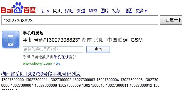 今天凌晨1點41分,13027308823這個手機號,給我打電話,響一聲就掛,我用百度查了一下,13027308823這個手機號的歸屬地信息是:
